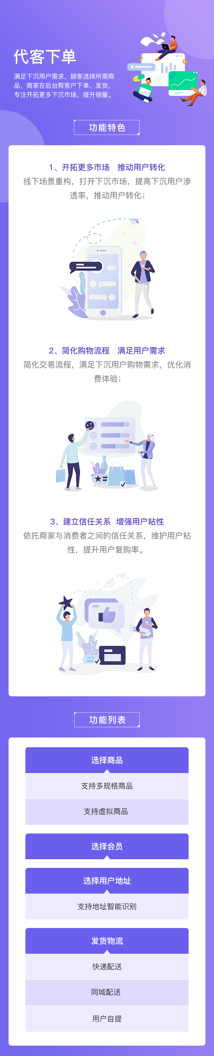 整合下沉资源,开拓更多市场,商家在后台帮客户下单、发货